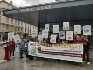 Ce jeudi 12 février, à l’appel de la CSF et de l’ALIM, une quarantaine d’adhérents CSF se sont rassemblés devant le Tribunal judiciaire de Lyon, en soutien à l’action l’action en justice de 28 locataires de la résidence Jean-Désiré Trait à Caluire,